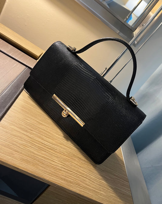 FEMME FORMIDABLE LIZARD PRINT PURSE IN BLACK